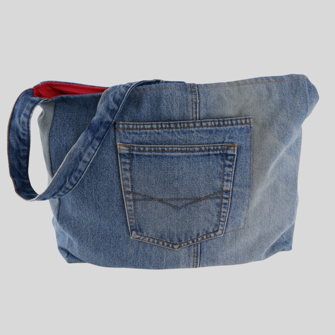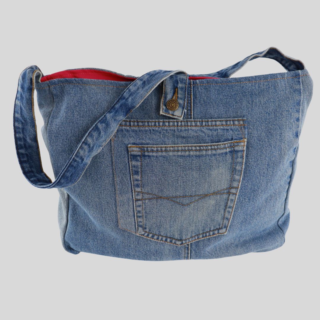 We have taken unwanted denim jeans and recycled them into bags!
