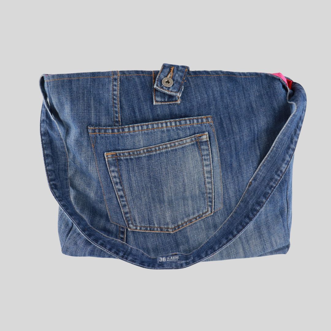 We have taken unwanted denim jeans and recycled them into bags!