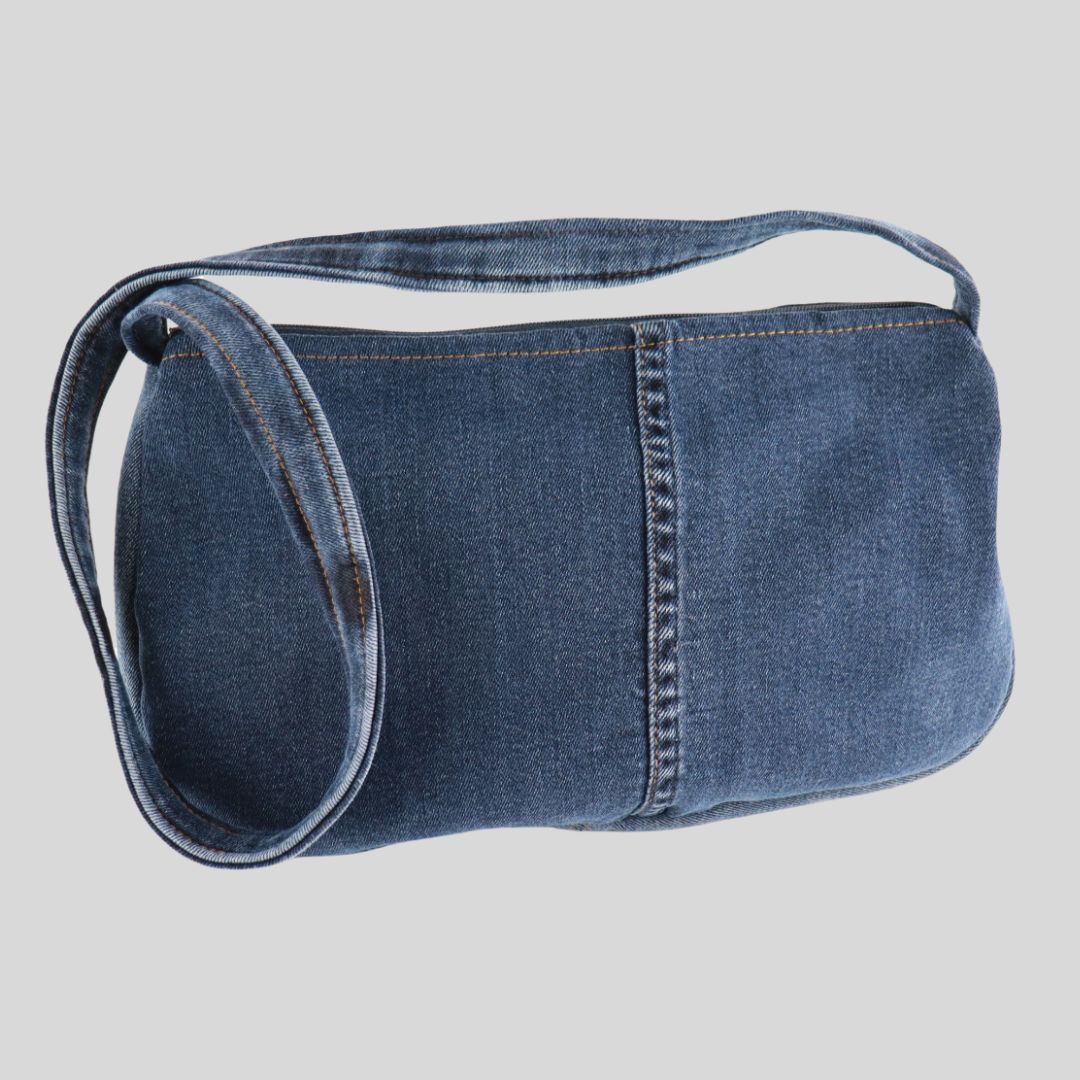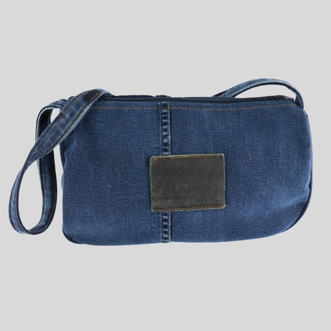 Made from Barkers jeans. The approximate dimensions are L30cms x H17cms x W8cms. The strap is 79cms long. Each bag is lined with pink cotton poplin. There are internal pockets on both sides. A zip to fasten.